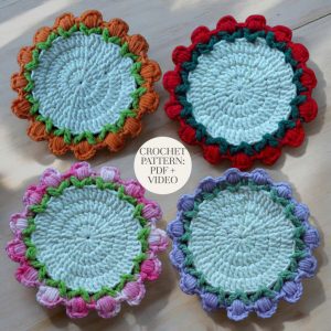 Pressed Tulip Crochet Coaster Pattern for Beginners – Easy Step-by-Step Tutorial (Video + English Subtitles)